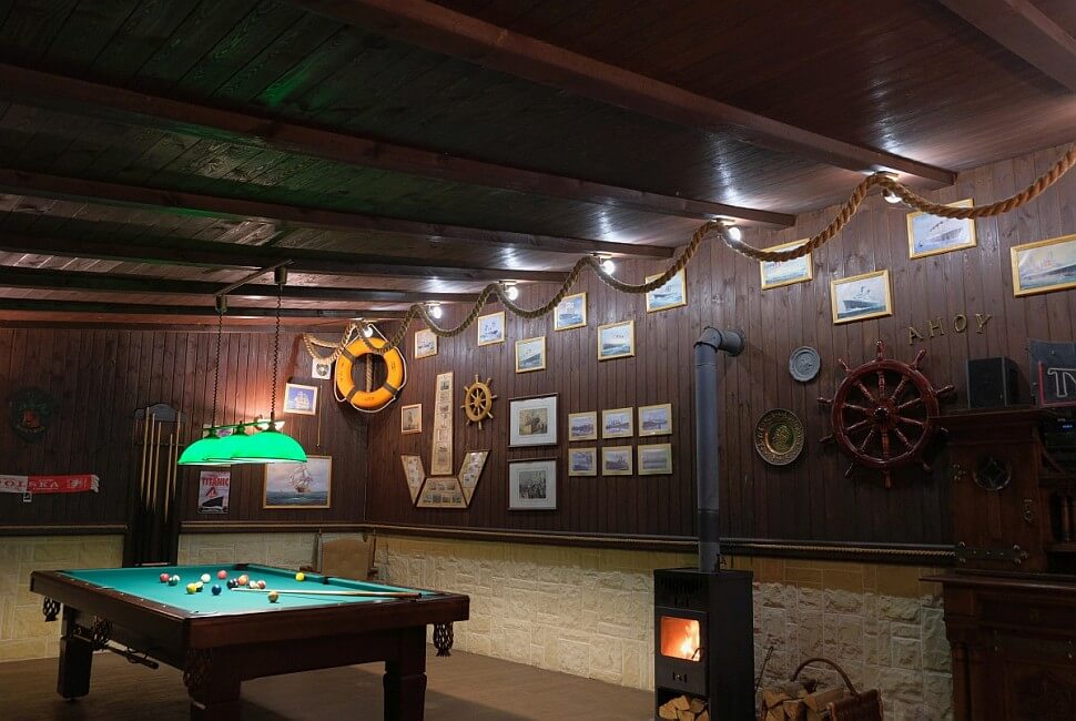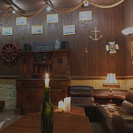 Wystrój utrzymany jest w marynistycznym stylu.